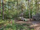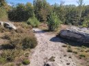 On entre dans le domaine de la Hottée du diable. C'est un endroit auquel on ne s'attend pas ici : une zone rocheuse telle qu'on en trouve en forêt de Fontainebleau. Rochers de grès et chemins de sable. Le site n'est pas étendu mais attire du monde. J'ai visité complètement le site le matin quand j'ai fait la rando dans l'autre sens.