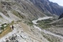 Le sentier prend de la hauteur vis-à-vis du glacier. A sa droite, le ravin de l'Encoula. Ce qui fait que le sentier forme une sorte de crête étroite.